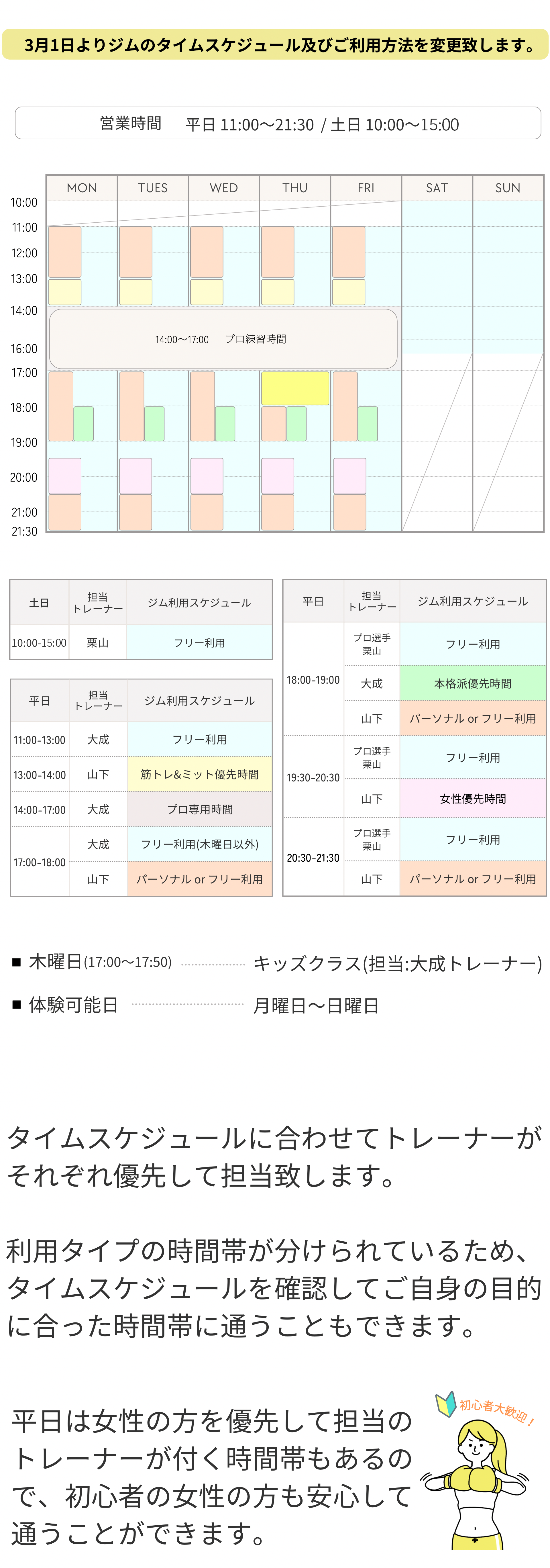 ※平日14時〜17時プロ練習時間の為、一般の方はご利用頂けません。